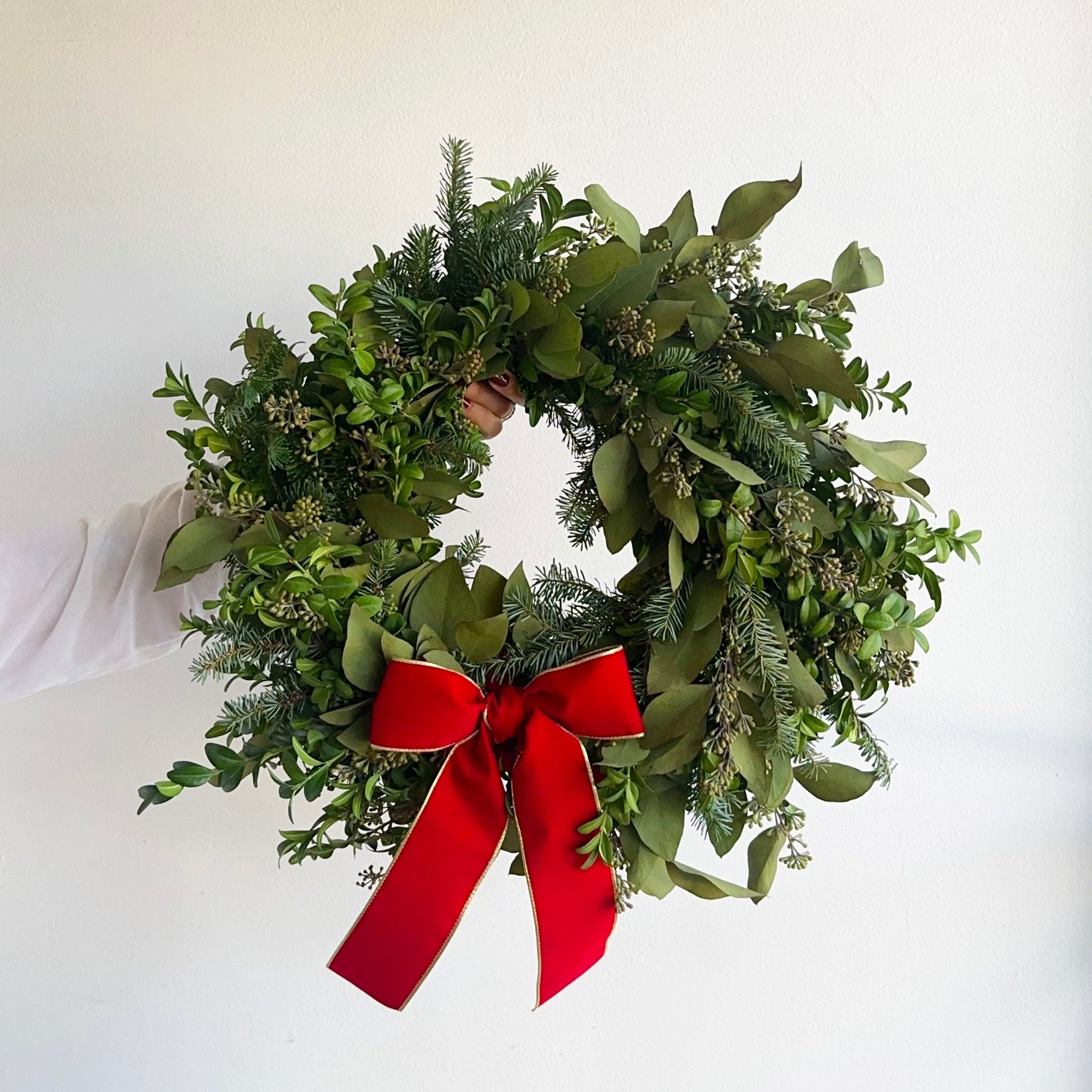 fresh evergreen holiday wreaths (preorder for week of november 17)