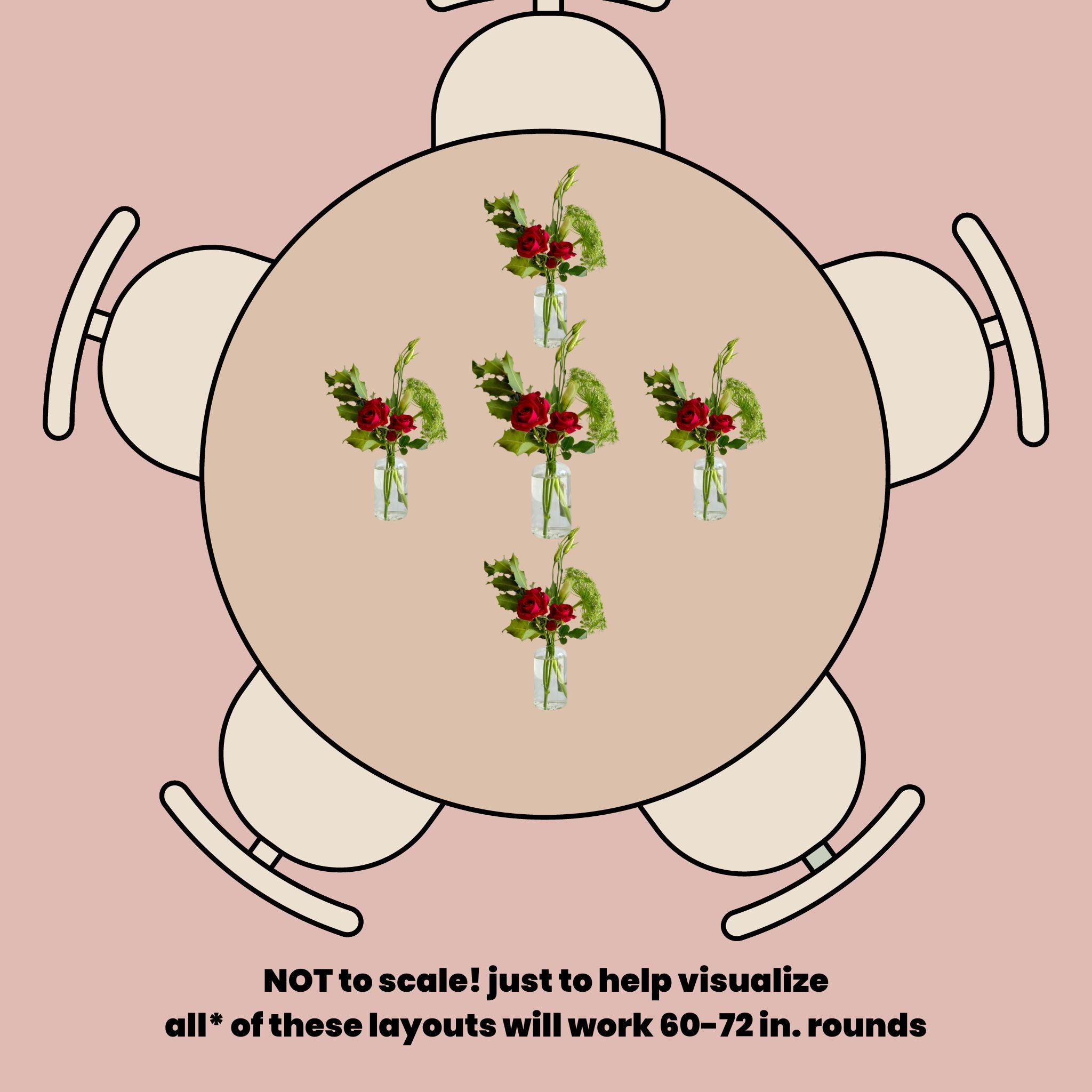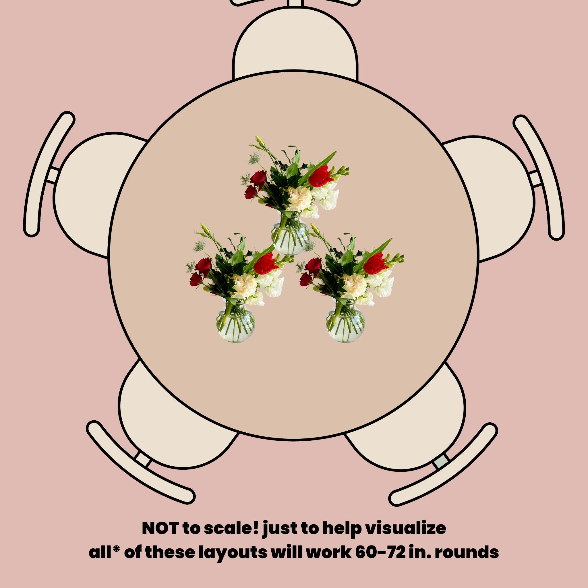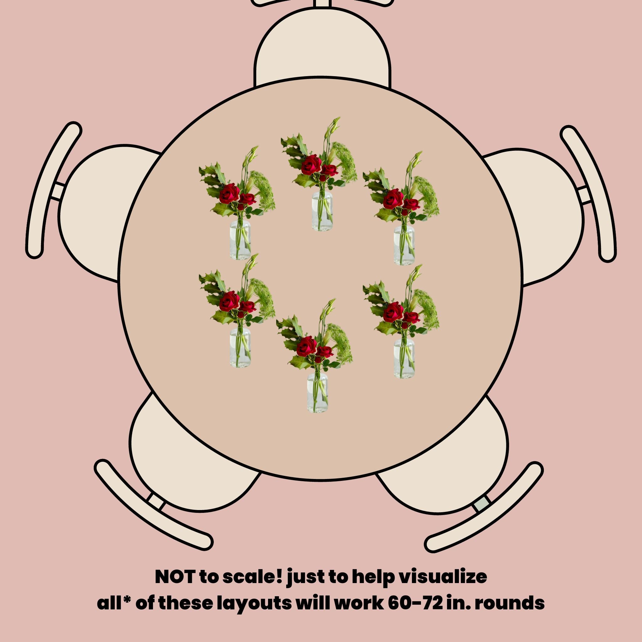 do you have a 60-72 in. round table? do you need help figuring out what to do? or maybe just some new ideas? look no further than the seven layouts below!